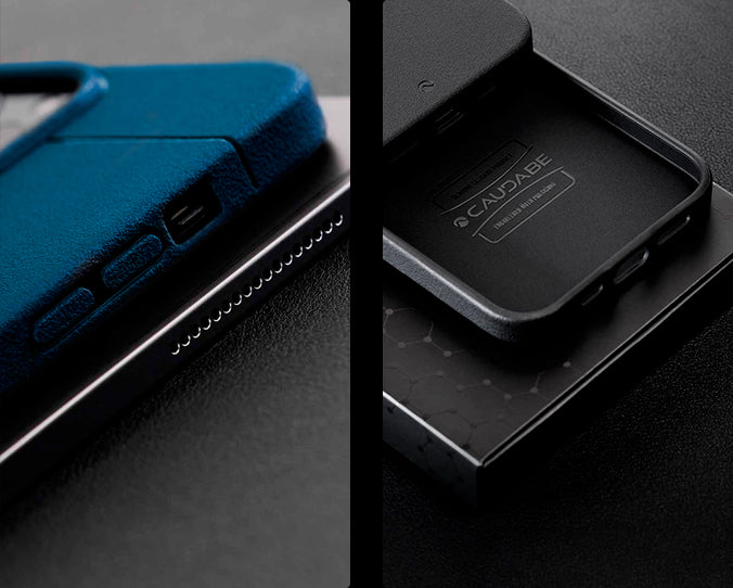 A unique, micro-etched matte texture that strikes the perfect balance between great feel and excellent grip. Smooth, rounded edges that extend ever-so-slightly above your phone's screen for added protection. Button covers that provide satisfyingly tactile feedback. A thicker reinforced wall around the charging port to reduce wear over time. Every last detail, thoughtfully considered and carefully crafted.