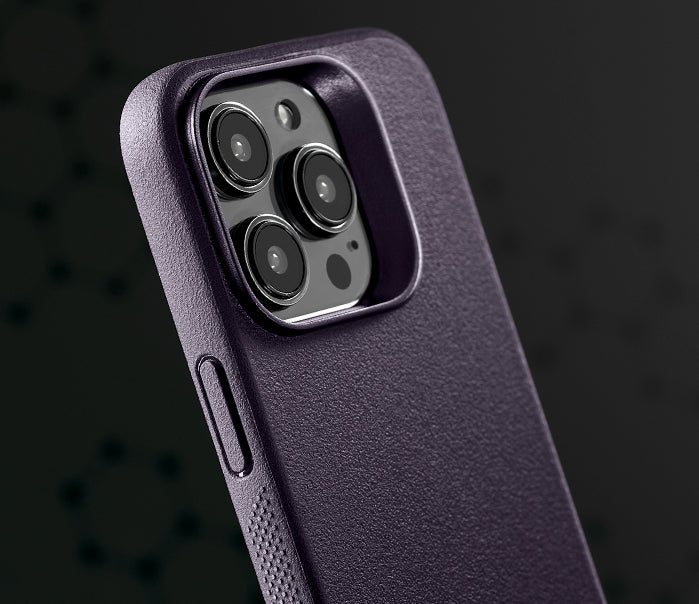 Our most protective case. The fusion of a perimeter manufactured from ShockLiteTM, our shock-absorbing polymer, and a rugged back shell. The iPhone 14 Pro Max Synthesis features all-new refinements, including a revised texture and a sleek, new dot matrix pattern on the sides to provide enhanced grip.